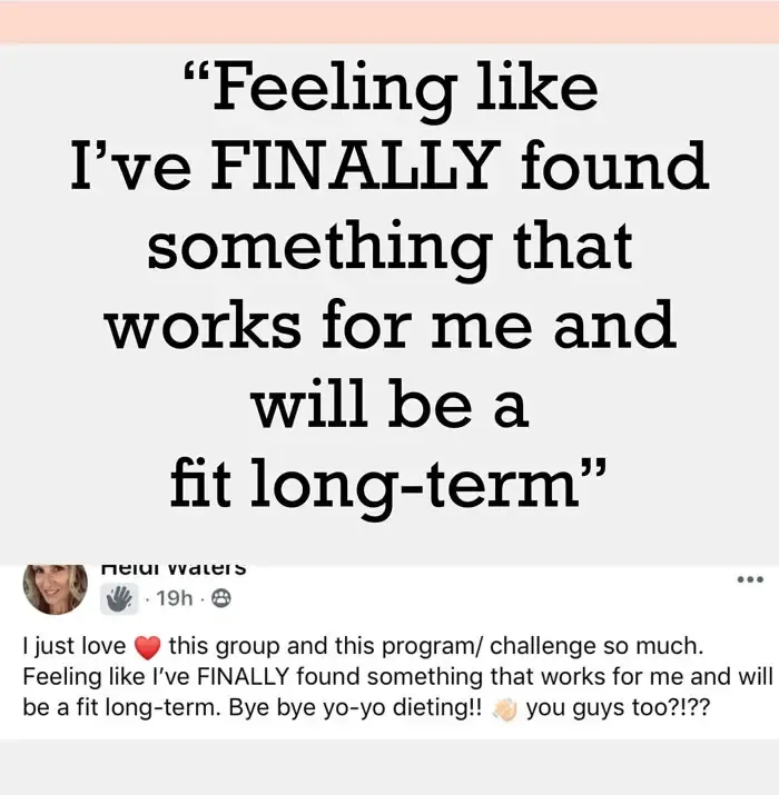 with people who are healthy. Friend-power is more influential than willpower… that’s why I will also grant you free access to my private group on Facebook which is home to over 5,000 of the most supportive and loving women on Facebook - we’re in this TOGETHER.